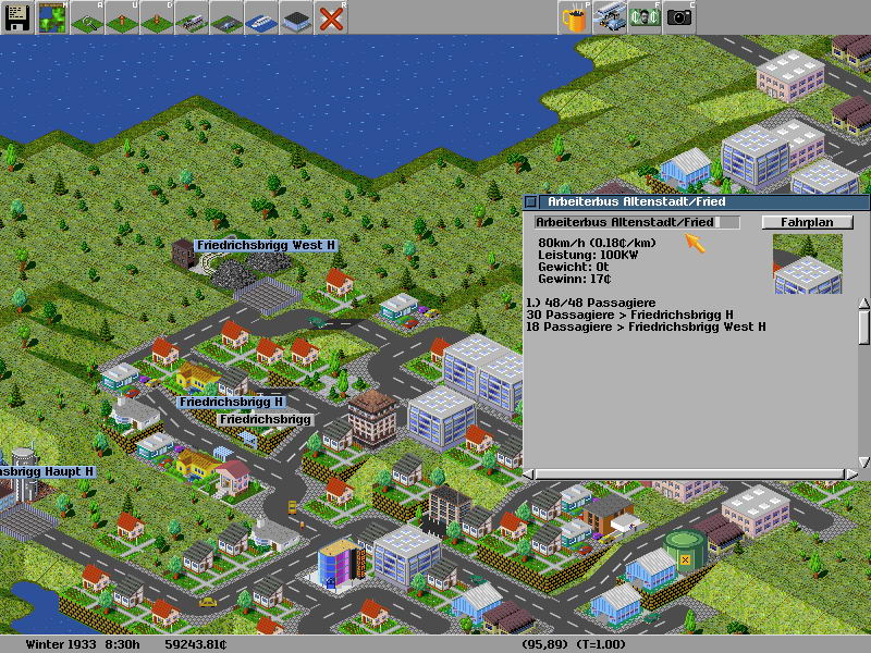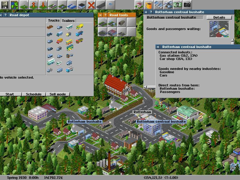 All you need to remember though, is that Simutrans citizens and products don't simply jump in your vehicles and go to wherever you send them. They actually have individual destinations: people want to check out attractions, go shopping, or visit friends. Wares also have their destinations - factories have contracts with each other and won't sell or buy from anyone else. If you don't give them the possibility to go where they want, they will not use your transport company.